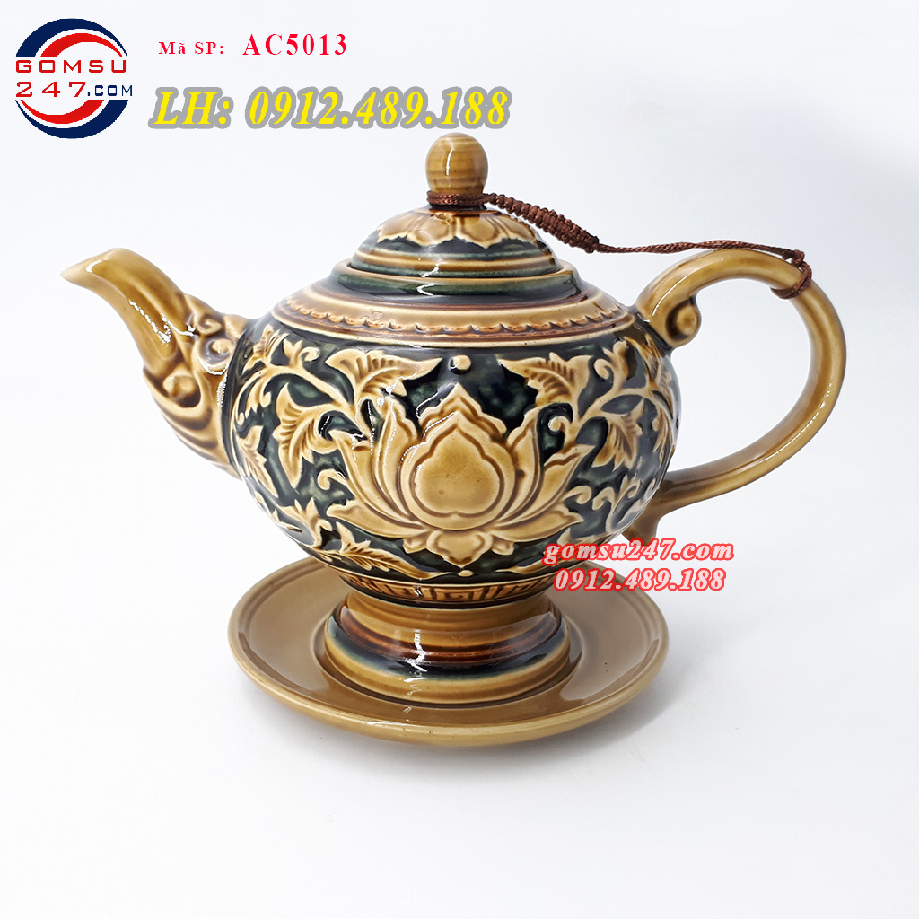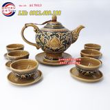 Mẫu ấm chén với hoa văn cổ được khắc nổi thủ công hoàn toàn, dưới bàn tay tay hoa của người thợ gốm Bát Tràng, những nét vẽ trang nhã, tinh tế, đem đến cho người sử dụng nó sự hài lòng.