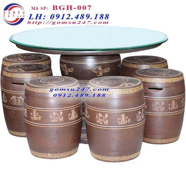 Bộ 6 đôn bàn ghế gốm men đen đường kính 90Cm - Bàn ghế gốm sứ Bát Tràng, có thể sử dụng tại nhà khách, sân vườn, không ngại mưa nắng, ấm thấp.