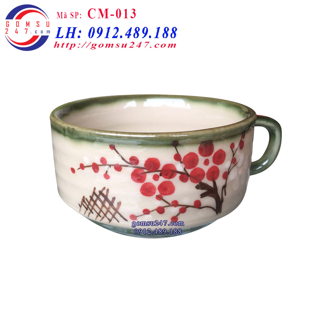 Cốc sứ Bát Tràng dáng cốc thấp vẽ đào đỏ