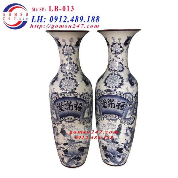 Lục bình Phúc Lộc Thọ 1,35 mét men trắng xanh trơn