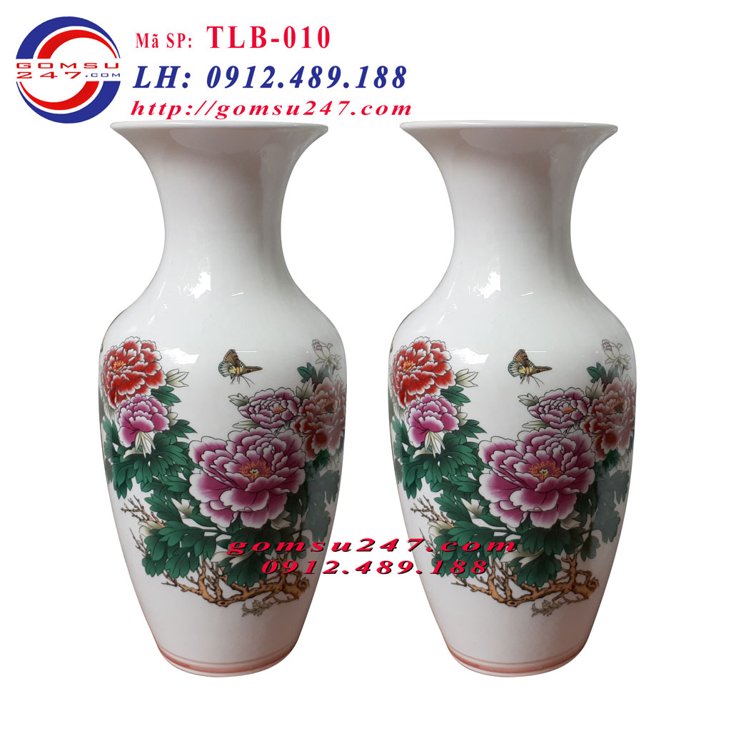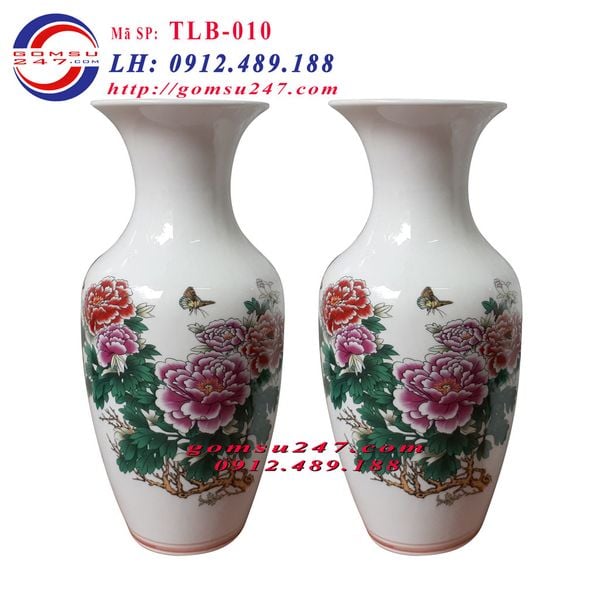 Lục bình sứ trắng vẽ hoa mẫu đơn