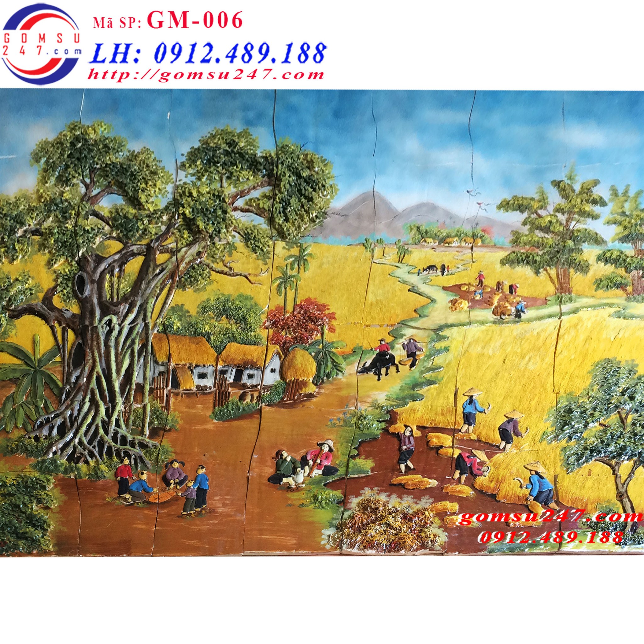 Tranh gốm dán tường cảnh đồng quê ngày mùa