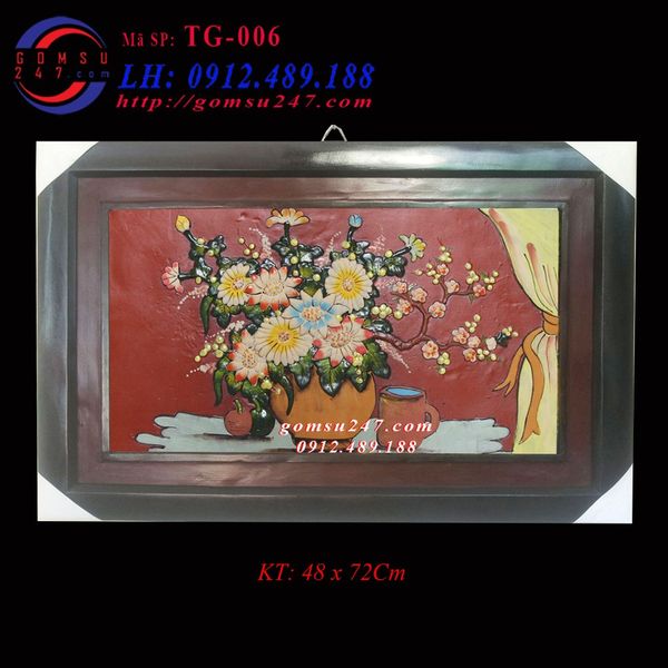 Tranh gốm sứ Bát Tràng khổ tranh 48 x 72Cm - Cảnh tĩnh vật lọ hoa